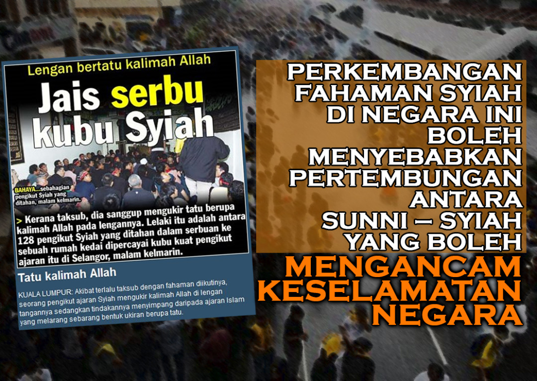PERKEMBANGAN FAHAMAN SYIAH DI NEGARA INI BOLEH MENYEBABKAN PERTEMBUNGAN ANTARA SUNNI - SYIAH YANG BOLEH MENGANCAM KESELAMATAN NEGARA